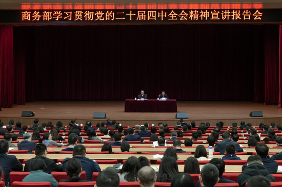 11月11日,商务部举办学习贯彻党的二十届四中全会精神宣讲报告会,中央宣讲团成员,商务部党组书记、部长王文涛作宣讲报告。